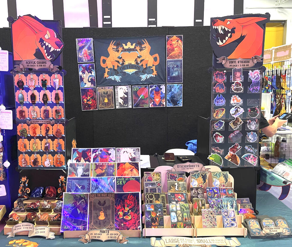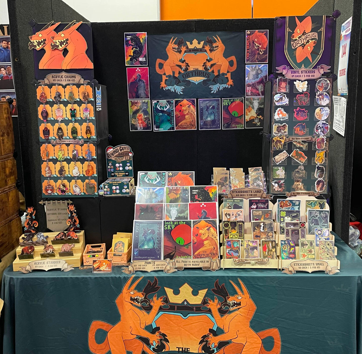 Welcome to the portfolio for The Orthrus. I'm an artist based in NZ who primarily draws inspiration from the mythological, paleo and monstrous with a special interest in big teethy canines.I started tabling at conventions in 2023 including Overload and Armageddon and attended my first Australian con in 2024.